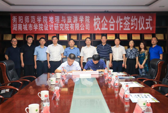 最后,双方围绕国土空间规划、乡村振兴和人才培养进行广泛交流探讨,充分发挥衡阳师范学院“地理科学”和我校“城乡规划”应用特色优势,就人才队伍建设、资质平台、科研课题申报、优秀成果申报和横向项目发展等方面达成一致,在双方校领导及参会代表共同见证下签署了校企合作协议。