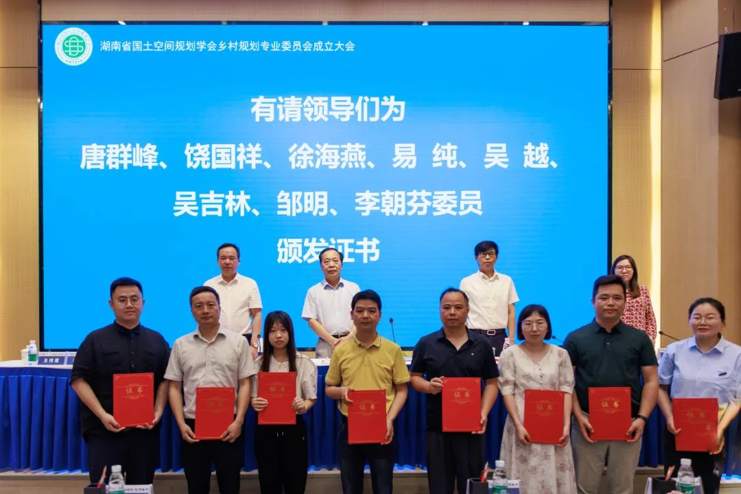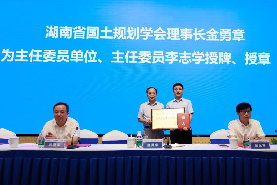 会上,谢光辉宣读了湖南省国土空间规划学会《完美(中国)官方乡村规划专业委员会组成人员的通知》。设计院为主任委员单位、院长李志学为主任委员。会议对主任委员、副主任委员、委员单位和个人授牌授章和颁发证书。
