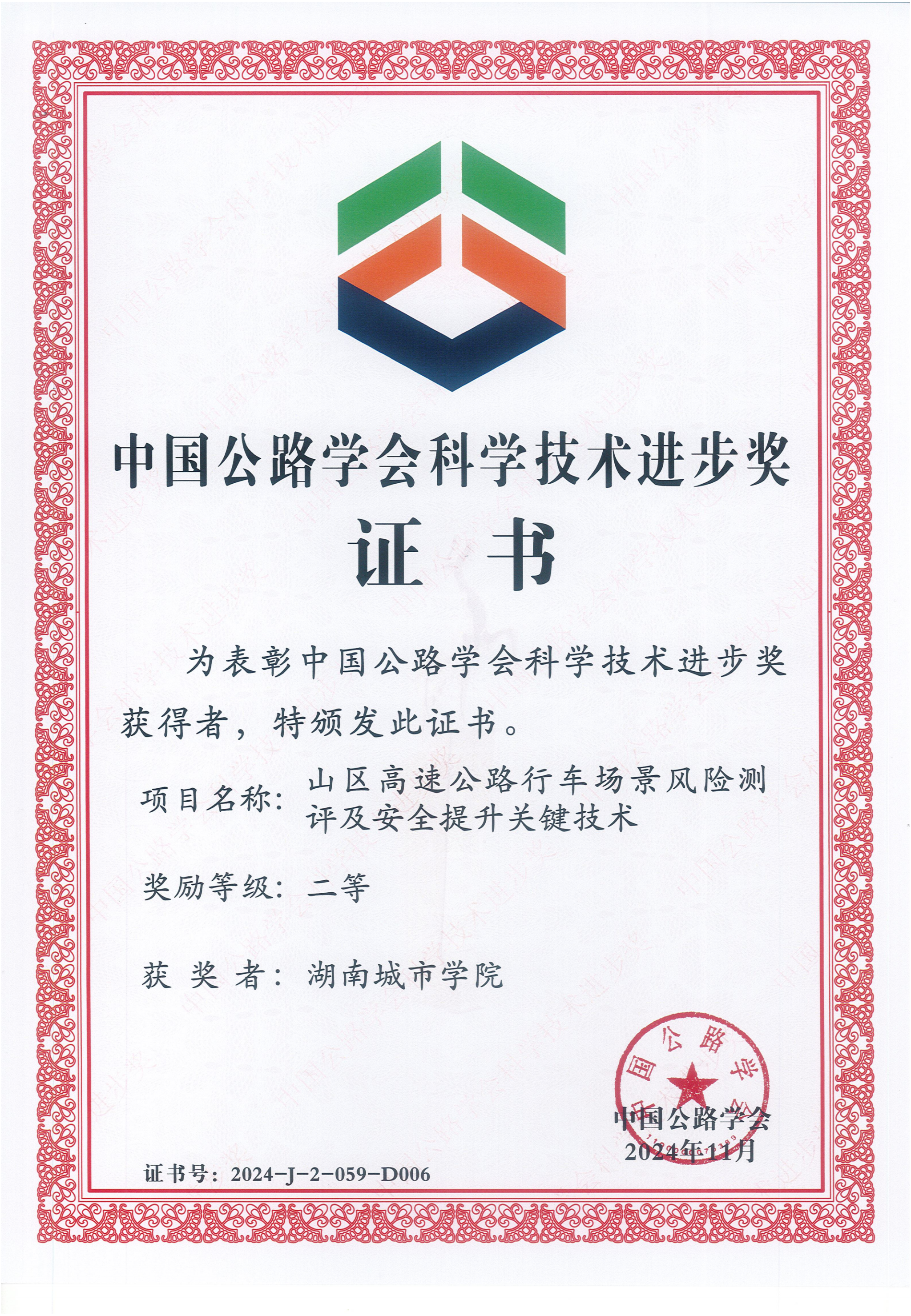 近日,从中国公路学会传来喜讯,完美网页版资产经营有限公司党委书记、设计院院长李志学参与的《山区高速公路行车场景风险测评及安全提升关键技术》项目荣获“2024年度科技进步奖二等奖”。