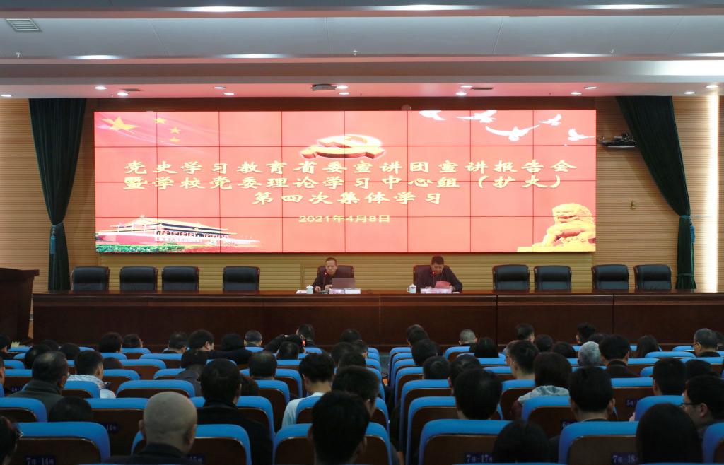 (转自学校官网)2021年4月8日下午,党史学习教育省委宣讲团宣讲报告会暨完美网页版党委理论学习中心组(扩大)第四次集体学习在图书馆报告厅举行,省委宣讲团成员、省委宣传部部务会成员、二级巡视员刘新年为大家作了一场精彩的宣讲报告。党委书记罗成翼主持报告会,学校全体校领导、副处以上干部、学生辅导员、党支部书记以及学生代表三百余人聆听了报告。
