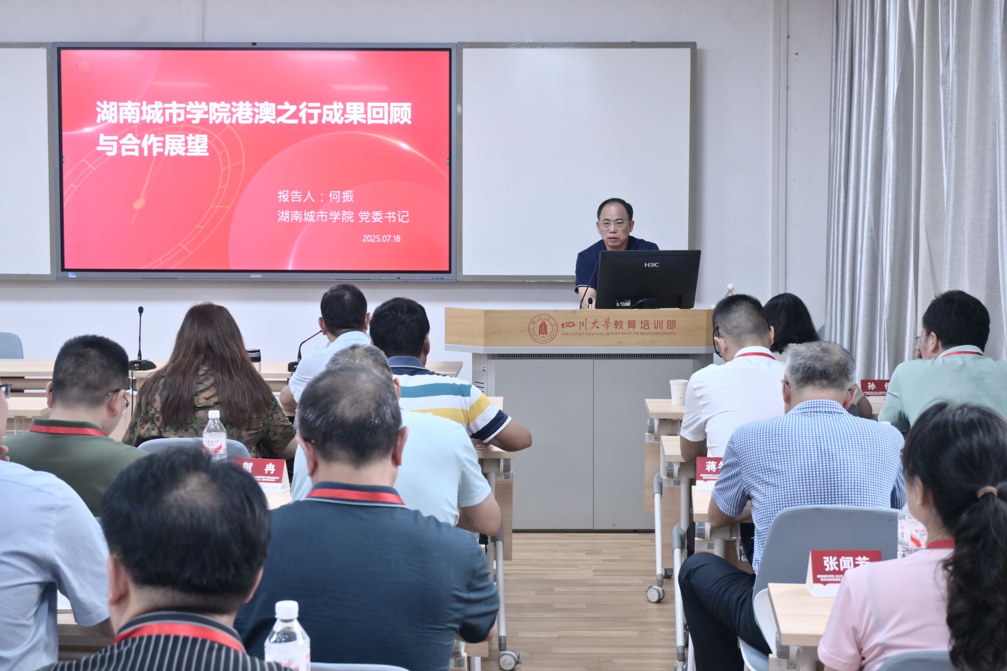 本网讯为进一步强化学校领导干部的政治修养,全面提升教学科研管理能力,7月14日至19日,完美网页版在四川大学举办2025年暑期领导干部政治能力与教学科研管理能力提升班,校领导何振、谭献良、徐姝、孙倩、吕贤军及部分职能部门负责人和二级学院院长、副院长共40余人参加培训。此次培训历时6天,采用专家讲座、现场教学、学习研讨等多元化形式,为领导干部“充电赋能”。