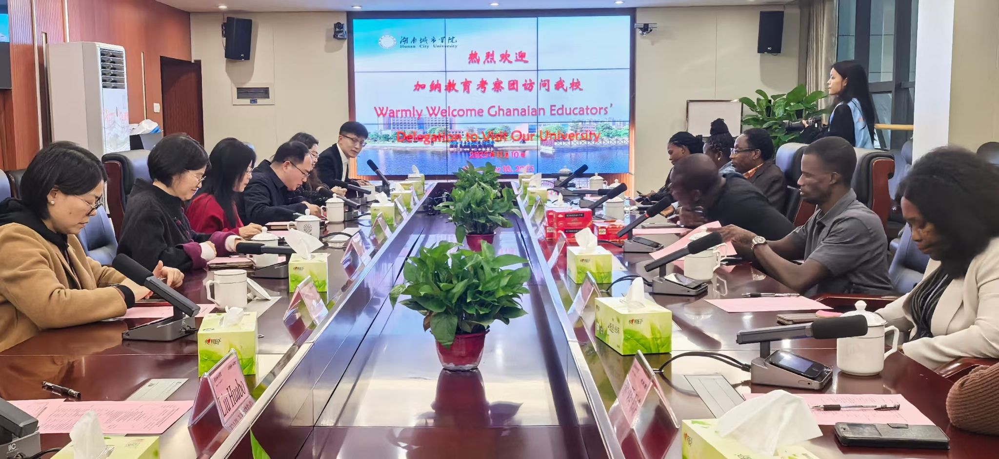 本网讯(通讯员杜林远)11月10日,在完美网页版迎来办学55周年之际,加纳教育访华团一行到访完美网页版。双方以“汉语桥”活动为纽带,续写中非教育深厚情谊,围绕孔子学院发展、教育文化合作、师生互访交流、城建领域科研协作等核心议题展开深入座谈,共商中非教育合作高质量发展新路径。党委书记何振、副校长徐姝出席座谈会。
