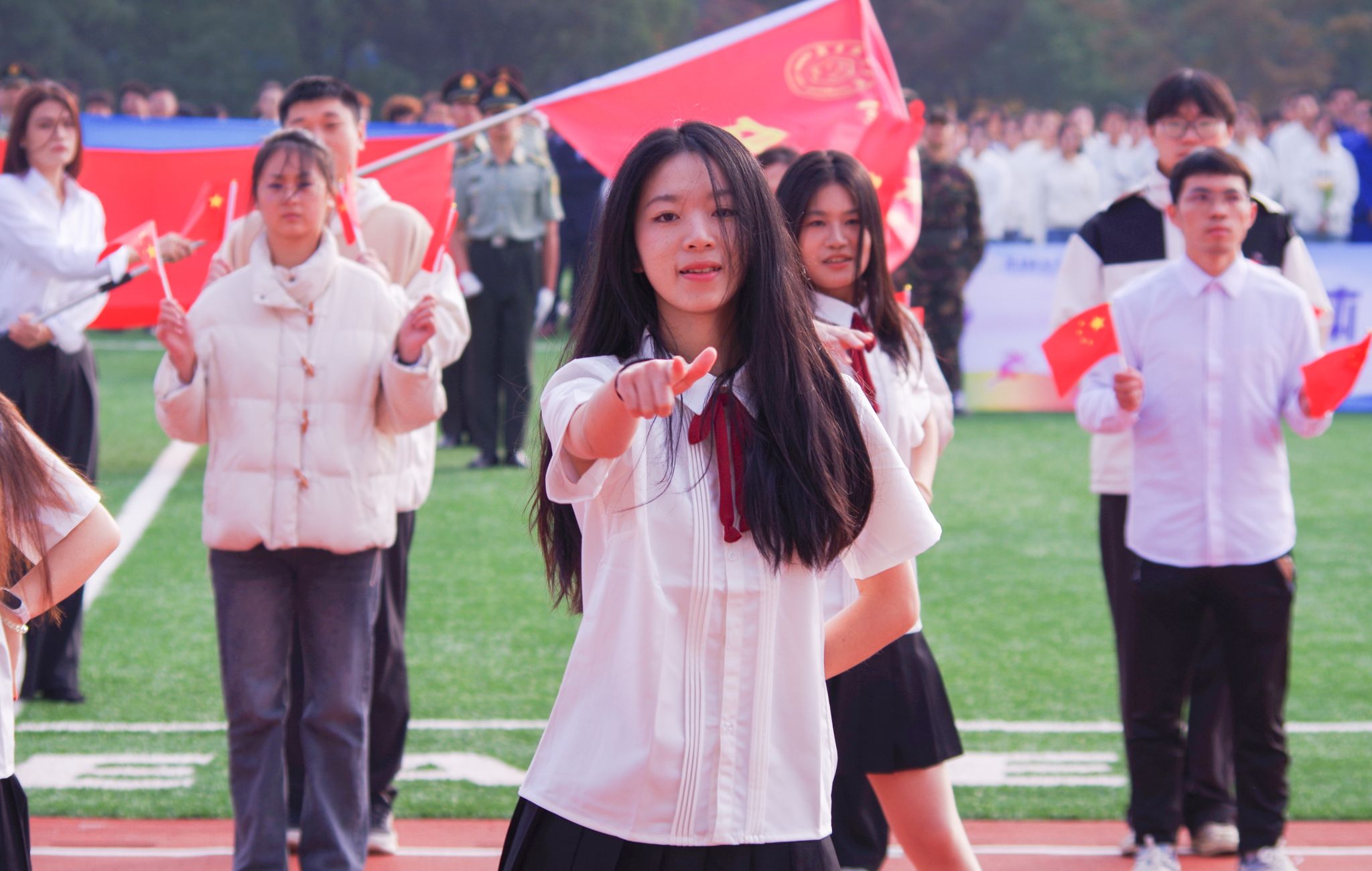 在入场式中,各二级学院运动员们还为现场观众献上了一场精彩纷呈的视觉盛宴。马克思主义学院的学子们执绸扇而来,以“赤韵”为热血注色,以“象行”铸拼搏之姿惊艳全场。管理学院带来的舞蹈《九州同》,将古典的底蕴与青春的脉搏同频,大气的力量与柔美的韵致交融,她们身穿一袭赤衣,如旭日映山河,手执一把长扇,似长风卷云霄。音乐与舞蹈学院带来舞蹈《sunshine》,她们用流畅线条勾勒活力,明快节奏传递热诚。其余13个学院也带来了精彩绝伦的表演,赢得了师生一致好评,现场欢呼与掌声交织在一起,持久不断。