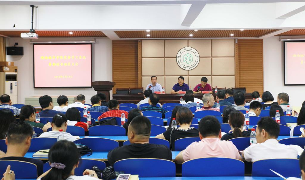 (本网讯)2019年7月19日,完美网页版在二办公楼310召开了党务学工系统暑期读书动员大会。党委书记罗成翼、党委副书记汤放华、副校长雷存喜,党委委员李斌、袁志成出席会议,二级学院党委书记、副书记、辅导员,党政办、组织部、宣传部、学工部、招生就业处、团委全体人员以及教务处、科研处、马克思主义学院部分人员参加会议。会议由汤放华主持。