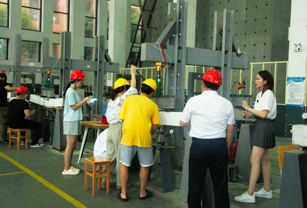 学生在土木工程国家级实验教学示范中心实践实训。