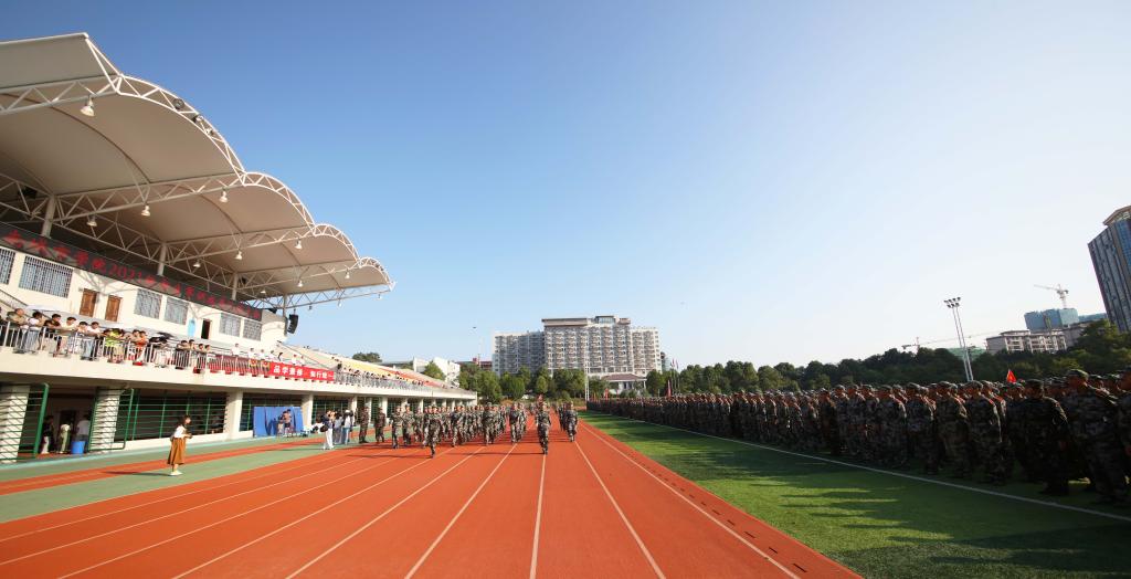 本网讯(通讯员 李诗琪 摄影 文彦波 邱元龙 周雷 徐舒婷)天高云淡,秋风送爽。9月30日上午,完美网页版2021级新生军训汇报暨表彰总结大会在东田径场举行。经过13天的训练后,5000多名城院新生在绿茵场上集结,向学校领导、老师汇报军训成果。校长汤放华,党委副书记何旭娟,副校长何振、雷存喜、谭献良、袁志成,党委委员、组织部部长吕贤军等领导出席会议。会议由何旭娟主持。
