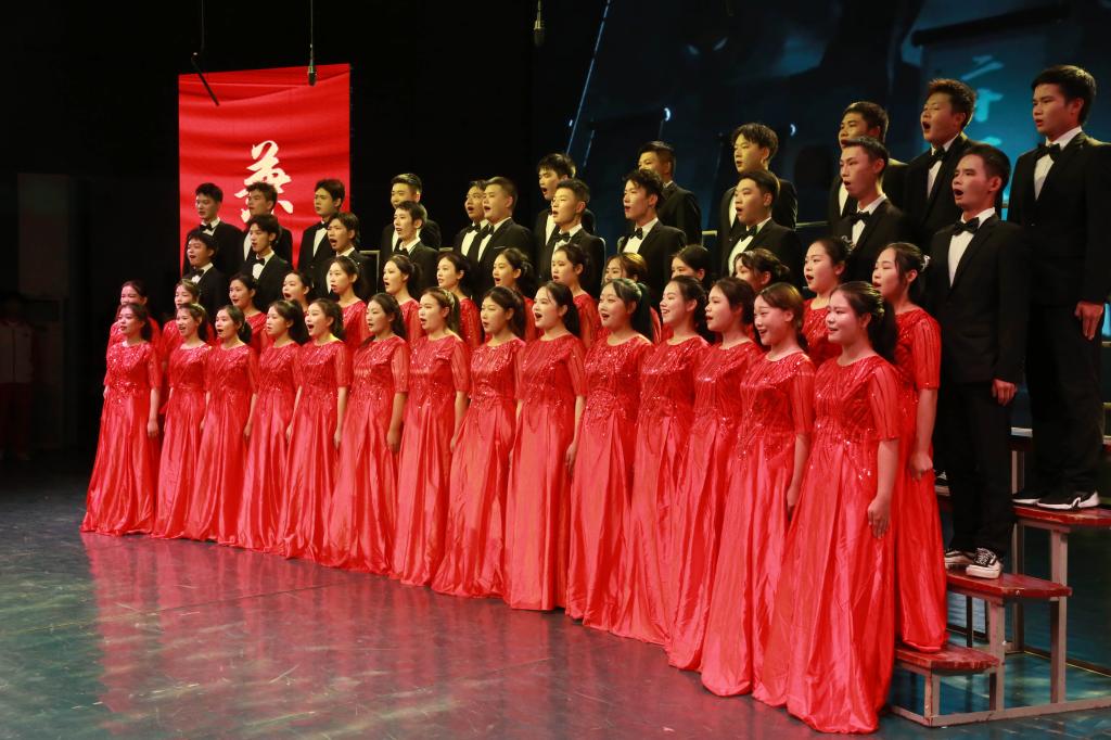 比赛中,13个二级学院学生组成的合唱队倾情献唱,参赛人员着装整齐、激情洋溢,用昂扬奋发的精神风貌表达了爱党爱国、同心奋进的城院情怀。一首首经典传唱的红色歌曲,唱出了他们对中国共产党的无限崇敬与热爱。台上热血沸腾,台下掌声雷动,现场高潮迭起、阵阵欢呼。