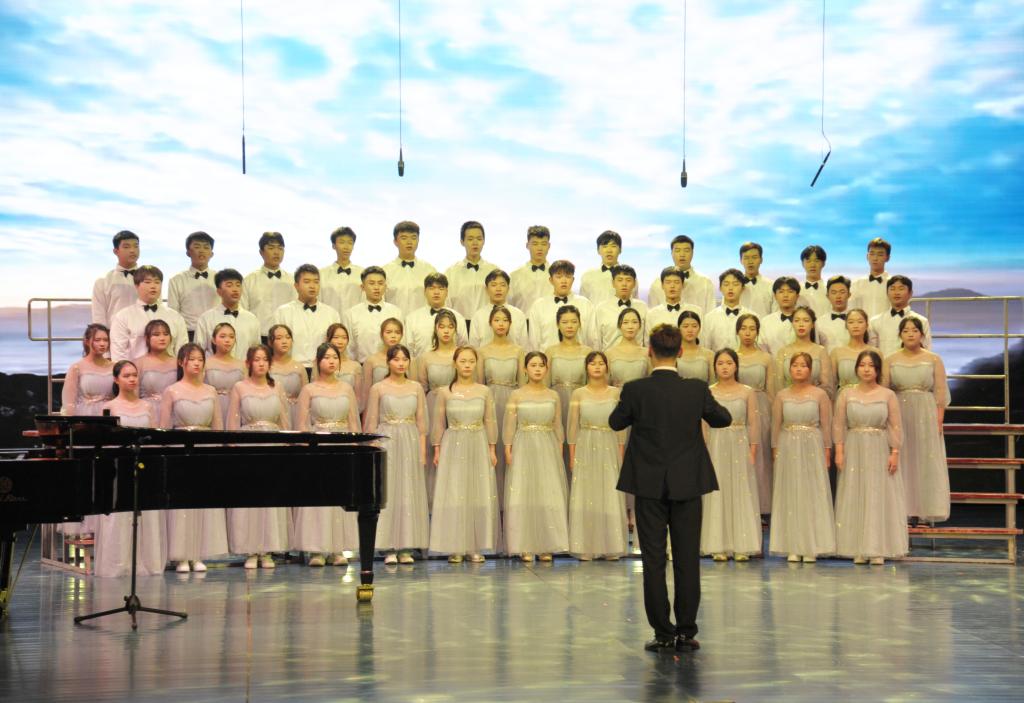 “都市的街巷,已灯影婆娑,社区暖暖流淌的欢乐……”合唱比赛在市政与测绘工程学院饱含深情演唱的《灯火里的中国》中悠扬开场。伴随着激情澎湃的节奏,《在灿烂的阳光下》《在太行山上》《万疆》《天耀中华》《祖国不会忘记》这些激昂的歌曲旋律久久飘荡在音乐厅上空。随后表演的《在希望的田野上》《不忘初心》《追寻》,抒发了对中国共产党的热爱和对美好生活的无限向往。《走进新时代》《走向复兴》《歌唱祖国》等歌曲的倾情演绎,表达了党和国家的深深祝福,台下不断挥动的国旗,展现了城院学子一片赤诚之心。艺术学院橙音合唱团表演的《怒吼吧黄河》,用热烈的呐喊和青春的鼓舞,带给现场观众最震撼人心的力量。最后,全场一起齐唱校歌《精英,从这里扬帆启程》,比赛徐徐落下帷幕。