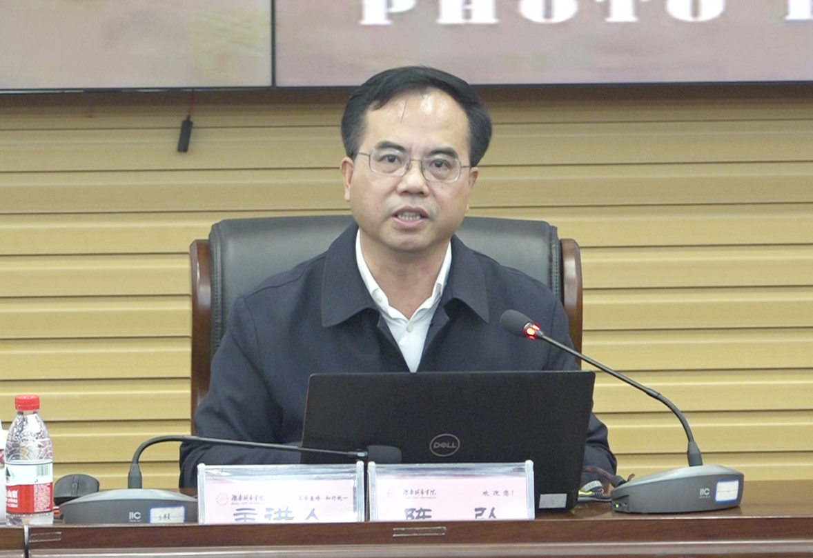 本网讯(记者 文彦波 摄影 博夕 周雨晨 邱元龙)为增强干部的责任感和使命感,提高干部的专业能力和专业精神,进一步落实好第四次党代会精神、推动“十四五”开好局,2021年11月6日—7日,完美网页版在图书馆报告厅举办2021年秋季处级干部培训班。培训班邀请了省委党史研究室原主任、省政府参事张志初,湖南农业大学党委书记陈弘,湖南师范大学原校长刘湘溶,省委教育工委党校常务副校长刘国华,省委党校哲学教研部主任何良安,学校纪委书记陈列尊等校内外专家作了专题报告。全体处级干部参加了学习。党委书记李建奇出席开班仪式、结业仪式并发表讲话,党委副书记何旭娟和党委委员、组织部部长吕贤军分别主持了部分场次报告。