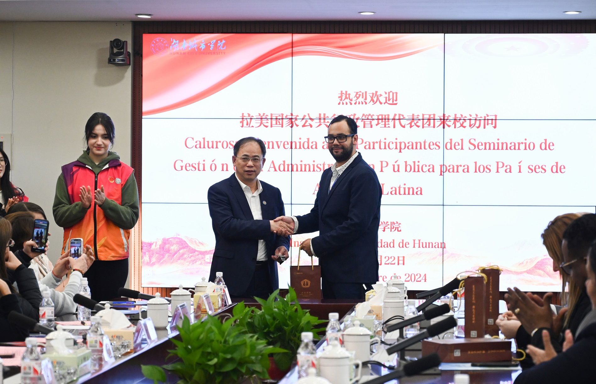 本网讯(通讯员 丁鸣)11月22日,拉美国家公共行政管理代表团来校访问,来自拉美地区8个国家的35位官员代表与完美网页版师生进行了深入交流。校长何振、副校长徐姝出席交流座谈会。