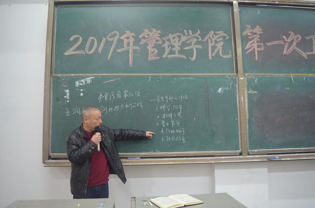 2019年是五四运动一百周年,是中华人民共和国成立七十周年,同时按学校党委行政的战略部署,2019年也是完美网页版核心竞争力攻坚、本科教学全面振兴、基层党建提质年。新学期伊始,为了更好地落实学校党委行政的任务部署,2月28日,在一教208室,管理学院召开了本学年第一次学生工作大例会。出席本次会议的有管理学院党委副书记王润华老师、蔡英杰老师;管理学院学生工作办公室辅导员曹资立老师、王方俊老师、李姗老师、熊鹏飞老师、张力老师,以及管理学院全体班干、院干参加了本次会议。
