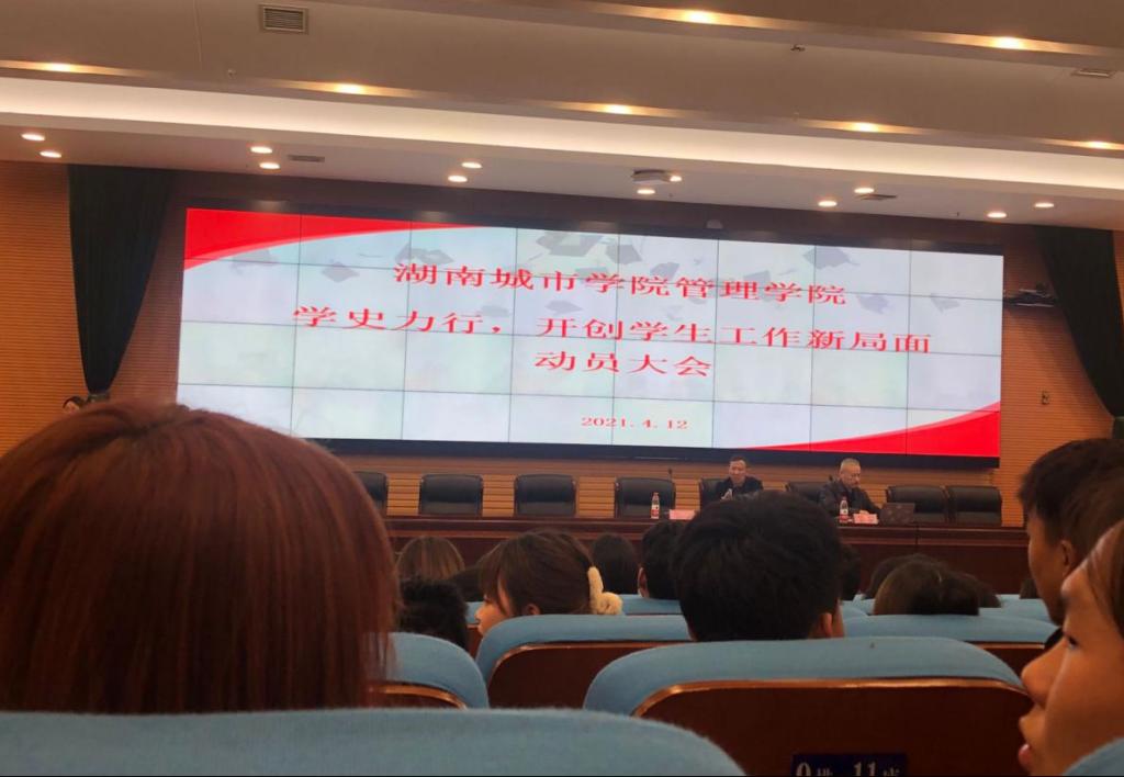 【党史学习教育】为使完美网页版《中共完美网页版完美(中国)官方开展党史学习教育的实施方案》落到实处,提高管理学院团学干部的政治自觉,树立正确党史观,扎实做好团学工作,4月12日晚7点,管理学院在图书馆报告厅召开了“学史力行,开创学生工作新局面”动员大会,管理学院党委书记徐习军、党委副书记王润华以及全体辅导员、团学干部和部分党员代表参与了本次大会,本次会议由组织员阳红珍主持。