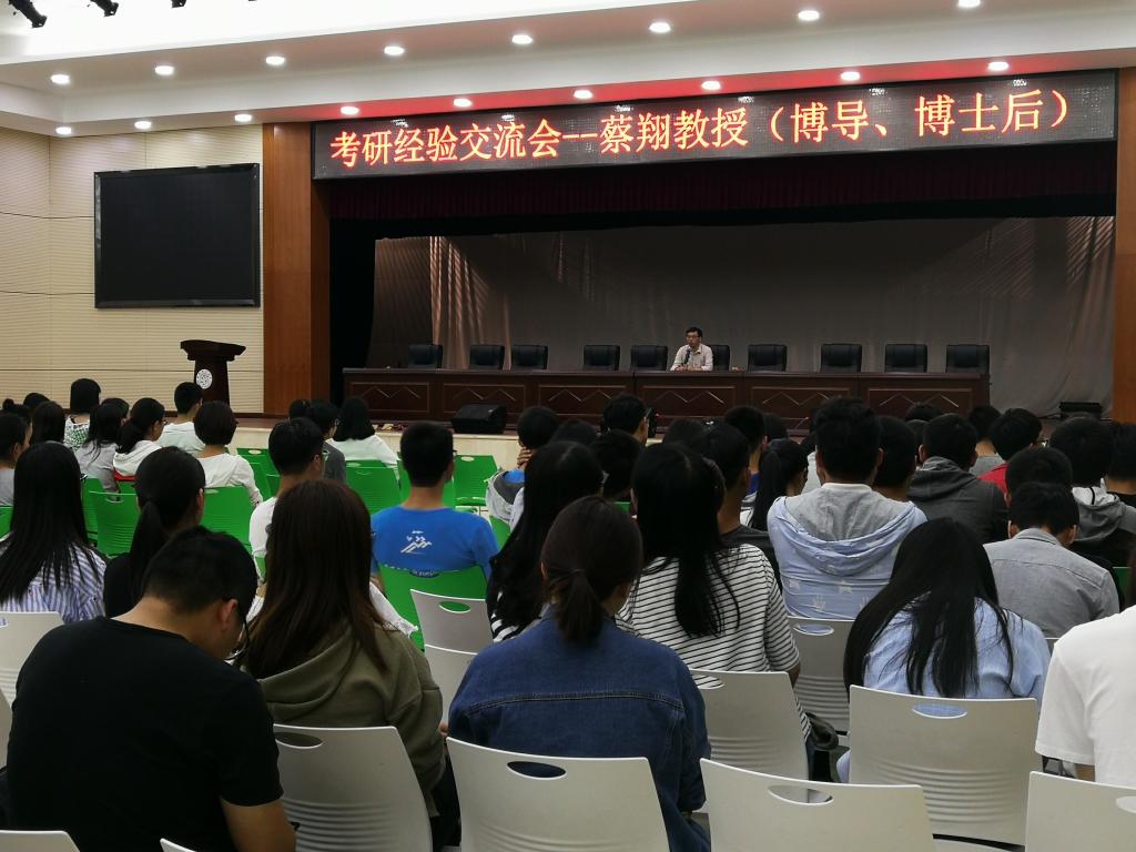 蔡翔教授给在场的管理学院学生介绍了自己的求学历程,也谈了自己作为博士生导师和硕士生导师,在选择研究生时的侧重点,并对大家的考研给出了若干意见。并就在场学生的各类问题进行交流答疑。