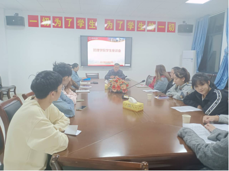 管理学院于10月12日晚19点管理楼622会议室召开预降级学生座谈会,学院党委书记王正安,辅导员刘洁莹,辅导员黄彪及预降级学生参加会议,会议由刘洁莹主持。