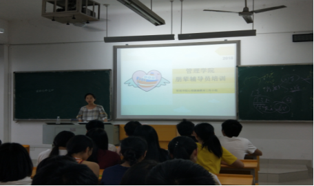为了进一步完善管理学院大学生心理健康保障体系,加速推进我院成长辅导室——“心灵港湾”的宣传与建设工作,2018年6月12日晚上9:30于管理楼204开展了朋辈辅导员培训。此次出席的人员有管理学院辅导员张力老师,管理学院心理部部分干事以及大一各寝室长。此次培训由张力老师担任主讲人。