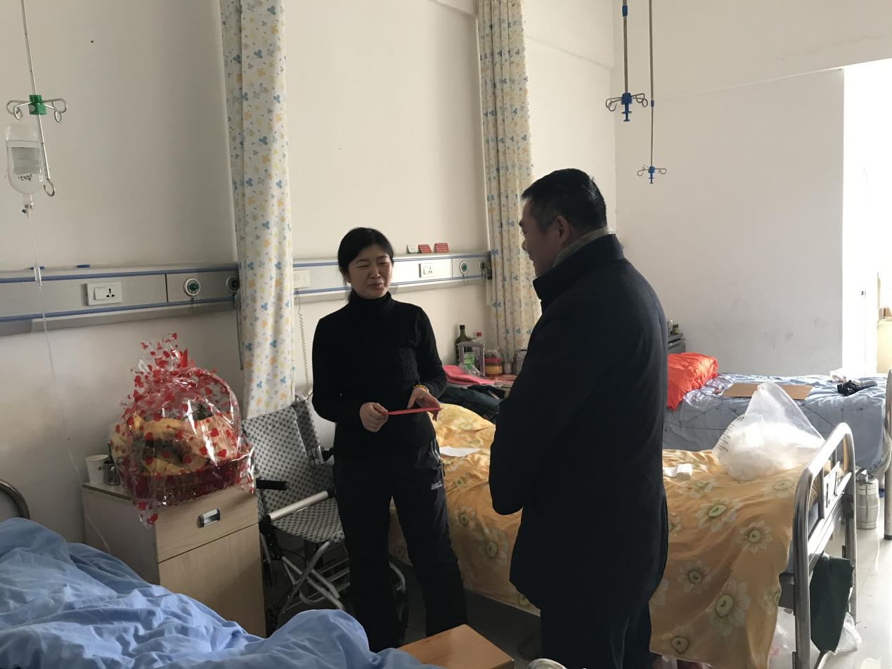 1月29日,管理学院党委副书记贺望林、学工办主任王方俊、辅导员熊鹏飞、张力、黄慧雅老师冒大雪对困难生进行了走访。此次走访对象为2017级学生,因父亲癌症晚期病危,医药费支出大,家庭经济困难。为减少走访家庭的负担,见面地点选择在医院,贺望林副书记与家长详细交谈,了解学生活情况,同时对国家的相关资助政策进行讲解,解释了学校“奖助贷”为主体的多方位资助体系,并与家长共同探讨该生的学业规划,鼓励受助学生全面发展,成为优秀人才,同时也征求了家长对学院教学、管理和服务方面的意见与建议,最后,亲手给予了慰问金。