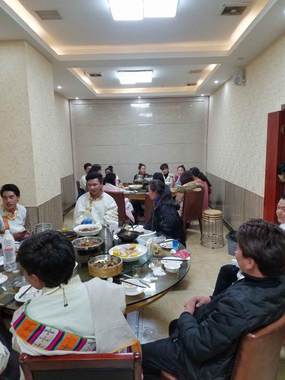 “团年饭”上,贺书记向藏族学生转达了校领导、学生处领导对他们的亲切问候,还详细询问了藏族学生学习、生活等方面的情况,“在益阳饮食、天气还习惯吗?”“听课时语言有障碍吗?”“一个月生活费多少?”“给父母打过电话么?”,师生交谈热烈。在座的藏族学生对学校的关怀表示了诚挚的谢意。他们表示,尽管自己的家乡远在千里之外,但老师和同学们视他们如亲人,他们在这里感受到了家庭般的温暖。最后,藏族学生为在座的老师献上洁白的哈达,并献唱了颇具民族特色的藏族歌曲。
