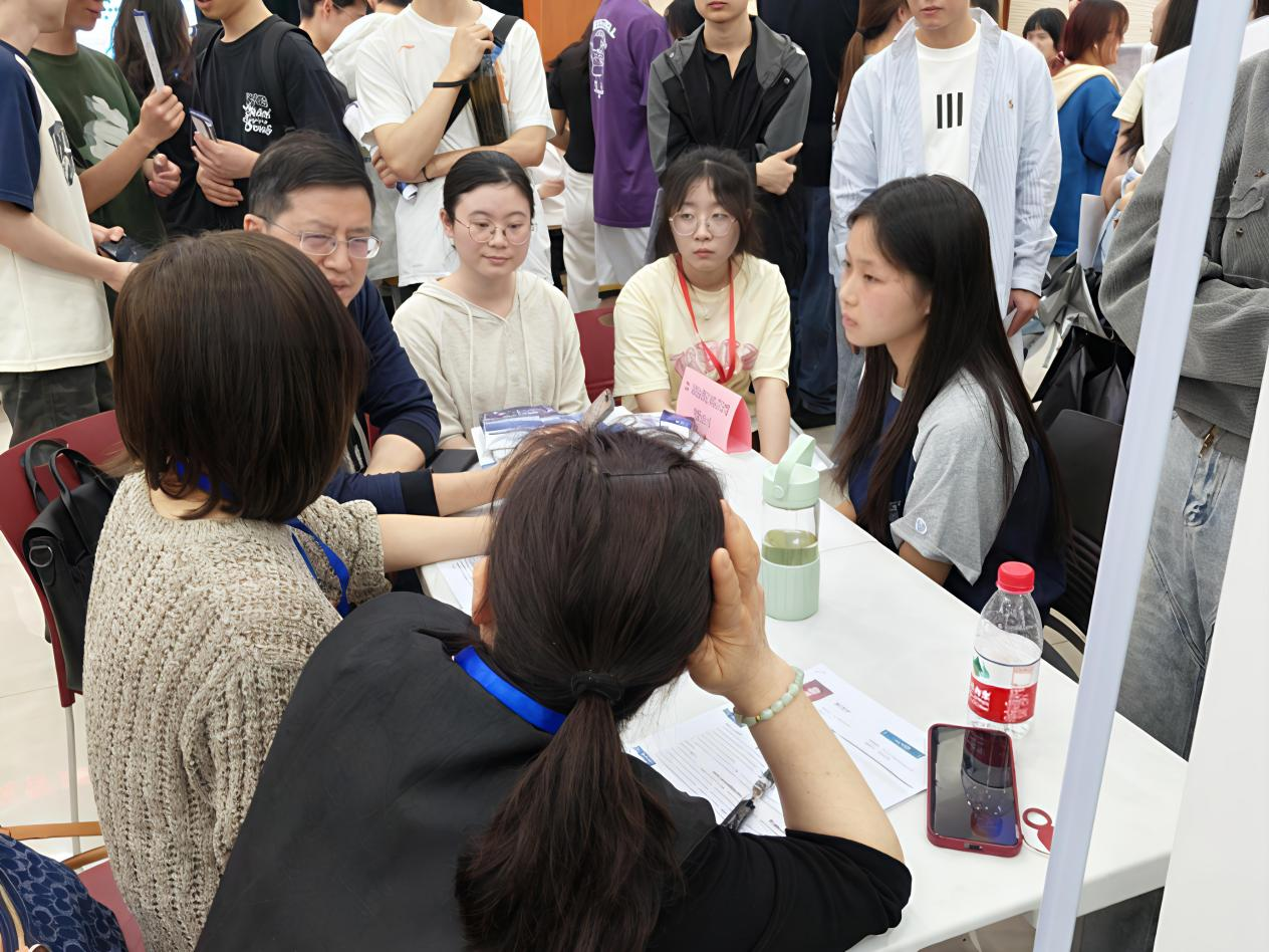 现场摩肩接踵,求职者与招聘方热切交流,洋溢着积极求职与求才的热烈氛围。各企业招聘人员向学生们介绍岗位详情,解答薪资待遇、职业发展等疑问。学生们手持精心准备的简历,积极与企业交流,展现出良好的精神风貌和专业素养。