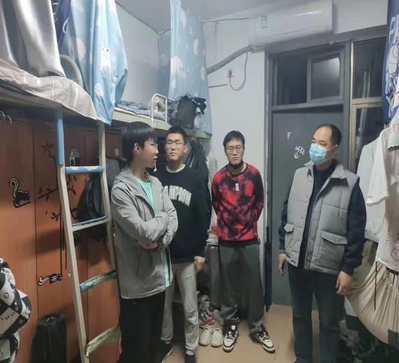 郑老师一行先行来到10栋对大二、大三男生进行下寝走访,主要强调疫情的防控工作,要求同学们坚持防疫“三件套”(科学佩戴口罩、保持社交距离、注意个人卫生),牢记防护“五还要”(口罩还要戴、社交距离还要留、咳嗽喷嚏还要遮、双手还要经常洗、窗户还要尽量开),做好防疫“四部曲”(加强个人防护、按时健康打卡、开展每日自主健康检测、非必要不出益);其次强调要营造良好的宿舍学习氛围,不睡懒觉、不玩游戏,宿舍要时时刻刻保持干净通风。随后,郑老师一行来到26栋对大四男生进行访谈,除了强调疫情防控之外,还了解毕业生同学的毕业设计完成进度情况、就业情况以及目前同学面临毕业前的一些困惑,并与同学进行深入交谈,及时解决一些困惑问题。