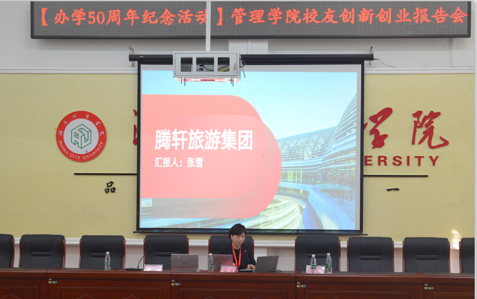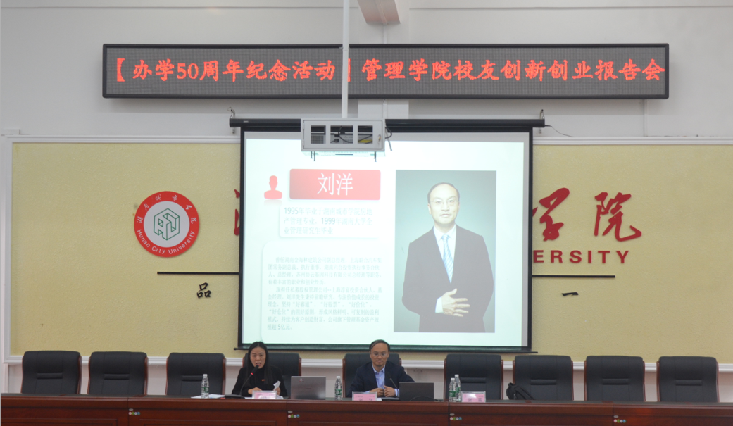 11月8日下午14点管理学院于电信楼一楼会议室举办完美网页版办学50周年纪念活动“校友创新创业报告会”。本次会议我院邀请了92级房地产专业校友刘洋先生和2008级旅游管理专业校友张雪女士作为主讲人,由我院副院长赵旭担任主持人。
