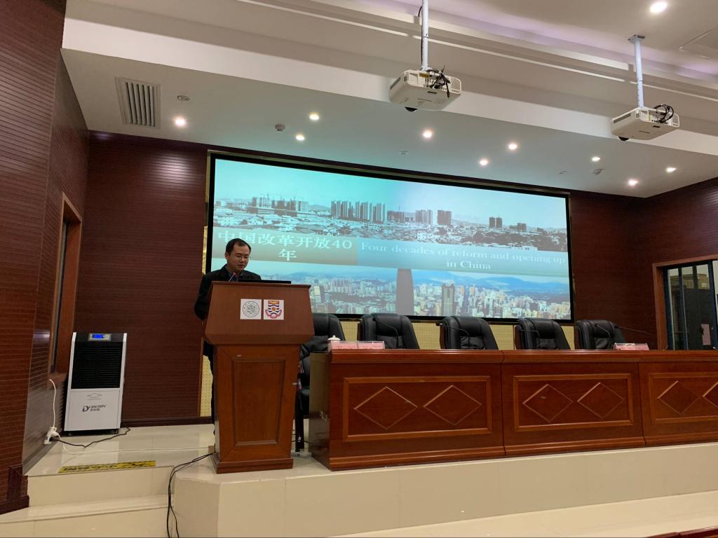 2018年12月13日上午9点,我院杜林远博士在建规楼121给来完美网页版参加中非论坛的加纳访华团和部分学校师生代表做了一场“中国改革开放40年”的学术讲座。杜林远博士从经济发展、科技创新、外交、对外贸易以及高等教育发展等方面向加纳访华团展示了我国1978-2018改革开放40年来取得的丰硕成果,并向加纳代表团介绍了中国五大发展理念以及发展战略。讲座结束后,杜林远博士还与加纳访华团就环境保护、一带一路、新型城镇化建设、中美贸易等问题进行了互动和交流。此次讲座,充分展示了我院年轻博士的国际交流能力和专业功底。
