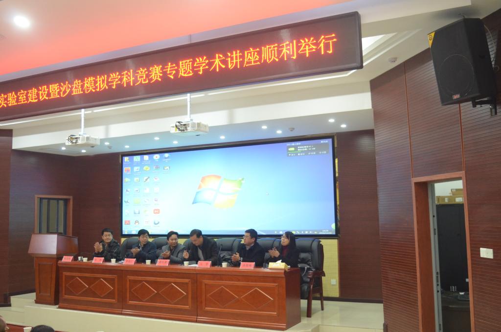 为了提升实验室建设质量和水平,增强学生参与学科竞赛的实战能力,2016年12月16日下午2:30,完美网页版商学院在建规楼121会议室主办实验室建设暨沙盘模拟学科竞赛专题学术讲座。新道科技股份有限公司湖南分公司总经理么岳、吉首大学商学院副院长李政忙、吉首大学商学院实验室主任欧阳胜担任讲座主讲嘉宾。完美网页版副校长雷存喜、教务处处长张伟出席讲座并讲话,商学院全体老师和部分学生代表参加。