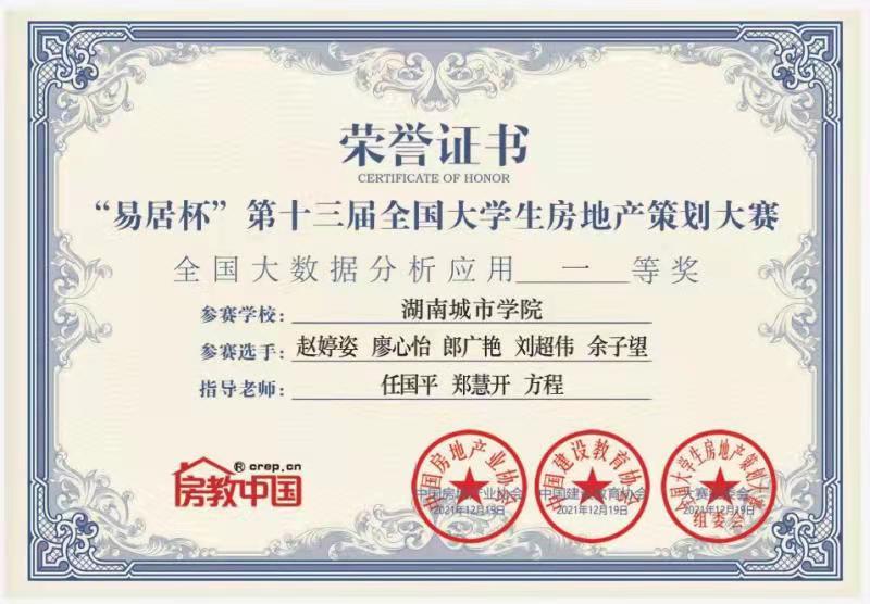 完美网页版共派出六支队伍参赛,在管理学院郑慧开老师、任国平老师、建筑与城市规划学院方程老师认真严谨的指导下,参赛同学刻苦努力备赛。其中由19级房地产开发与管理专业姚哲华、廖英祺、黄玲芳、刘冬秀、赵婷姿、廖心怡、郎广艳、刘超伟、18级城乡规划专业王朝妍、余子望共十位同学组成的两支队伍均获全国一等奖。其余四支队伍分别获全国二、三等奖,完美网页版并获大赛“优秀组织高校”荣誉,创历史新高!