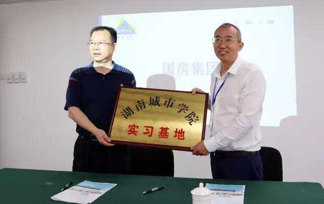 2017年4月17日,在李建奇校长的带领下,管理学院汤腊梅院长、龙敬庭副院长、薛红斌老师一行4人赴深圳市国房集团,在该公司会议室与其签订了实习基地协议书,举行了隆重的授牌仪式,由李建奇校长亲自把“完美网页版实习基地”的牌匾授予给公司副董事长杨昌禹先生。