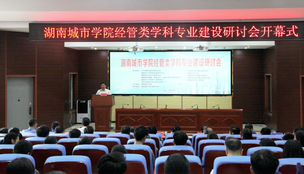 为深入贯彻落实全国教育大会精神,坚持以本为本,切实提高人才培养质量,加强完美网页版经管类学科专业建设,6月2日管理学院承办了由学校主办的经管类学科专业建设研讨会。研讨会开幕式在建筑规划楼举行。应邀出席开幕式的有湖南省委政策研究室、中国致共党湖南省委员会、湖南省人民政府发展研究中心、湖南省社会科学界联合会、湖南省长株潭“两型社会”试验区建设管理委员会、益阳市城市管理行政执法局、益阳市房地产管理局、益阳市文化旅游广电体育局等单位的领导,以及深圳市斯维尔科技股份有限公司、湖南泽华私募股权基金管理有限公司等单位负责人。出席会议的学校领导有校长李建奇、党委副书记汤放华、副校长郑卫民、副校长谭献良等。参加会议的还有教务处、人事处、科研处、学科建设与发展规划处领导,以及管理学院全体教职工和学生代表共150余人。