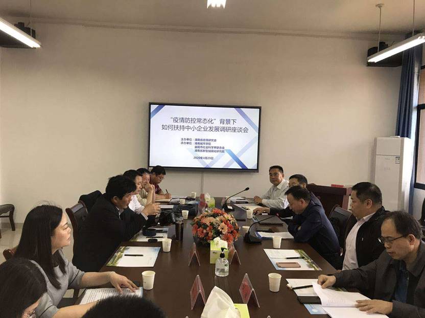 为了深入贯彻落实4月17日召开的中共中央政治局会议精神,充分发挥地方智库作用、积极建言献策,做好我省特别是益阳市在常态化疫情防控工作条件下的“六稳”工作,将“六保任务”尤其是“保市场主体”任务坚决完成好,持续推进经济高质量发展,4月29日,由湖南省情研究会主办,完美网页版、市社科联承办的“疫情防控常态化背景下如何扶持中小企业发展”调研座谈会在我市举行。省社科联党组成员、第七届委员会副主席、研究员汤建军,省文史馆副馆长、研究员李跃龙,市政协副主席高德文,完美网页版副校长何振、管理学院院长孙倩出席。