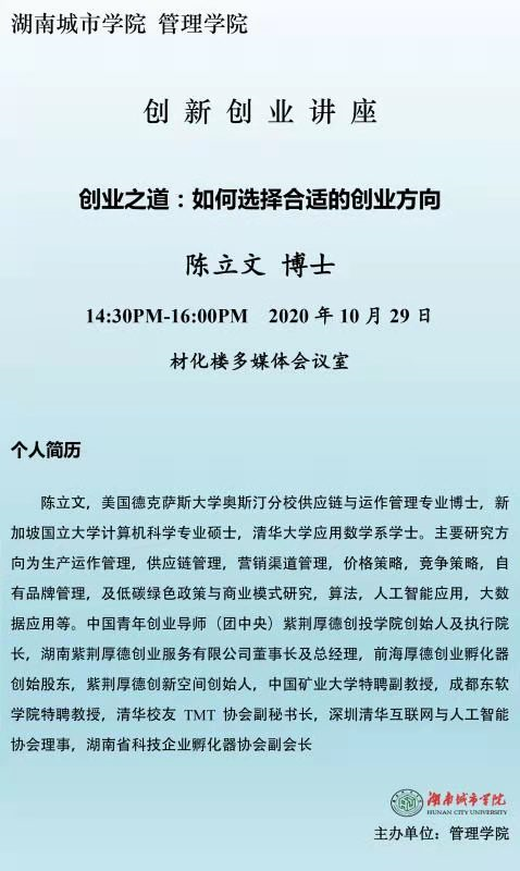 【创新创业讲座】15陈立文 博士:创业之道;如何选择合适的创业方向