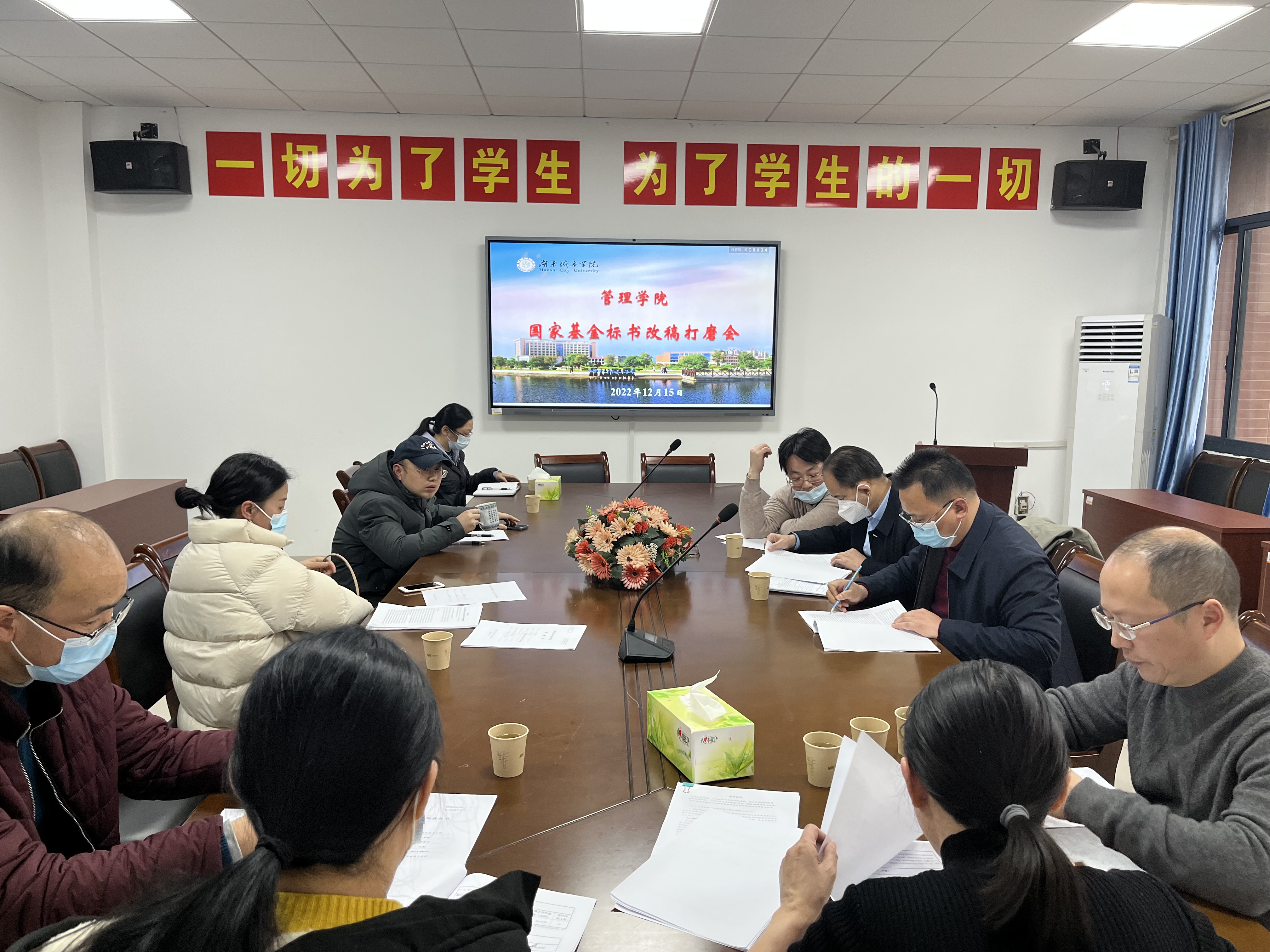 2022年12月15日下午,我院在管理楼622室召开了“2023年国家基金标书改稿打磨会”。本次会议邀请何振教授对我院8位老师的基金标书进行针对性的改稿。会议由管理学院副院长任国平主持,孙倩院长、审计处汤勇处长、科研处赵旭副处长以及学院科研团队成员参加了此次会议。