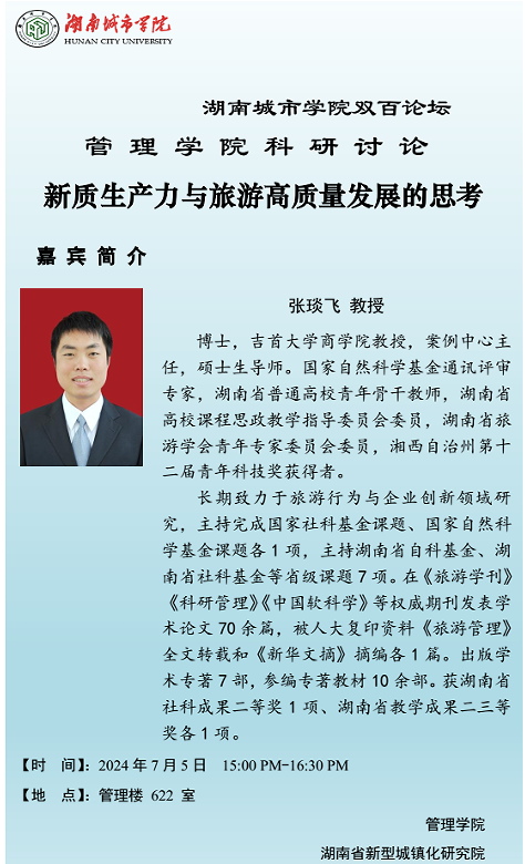 学术讲座:新质生产力与旅游高质量发展的思考 张琰飞教授