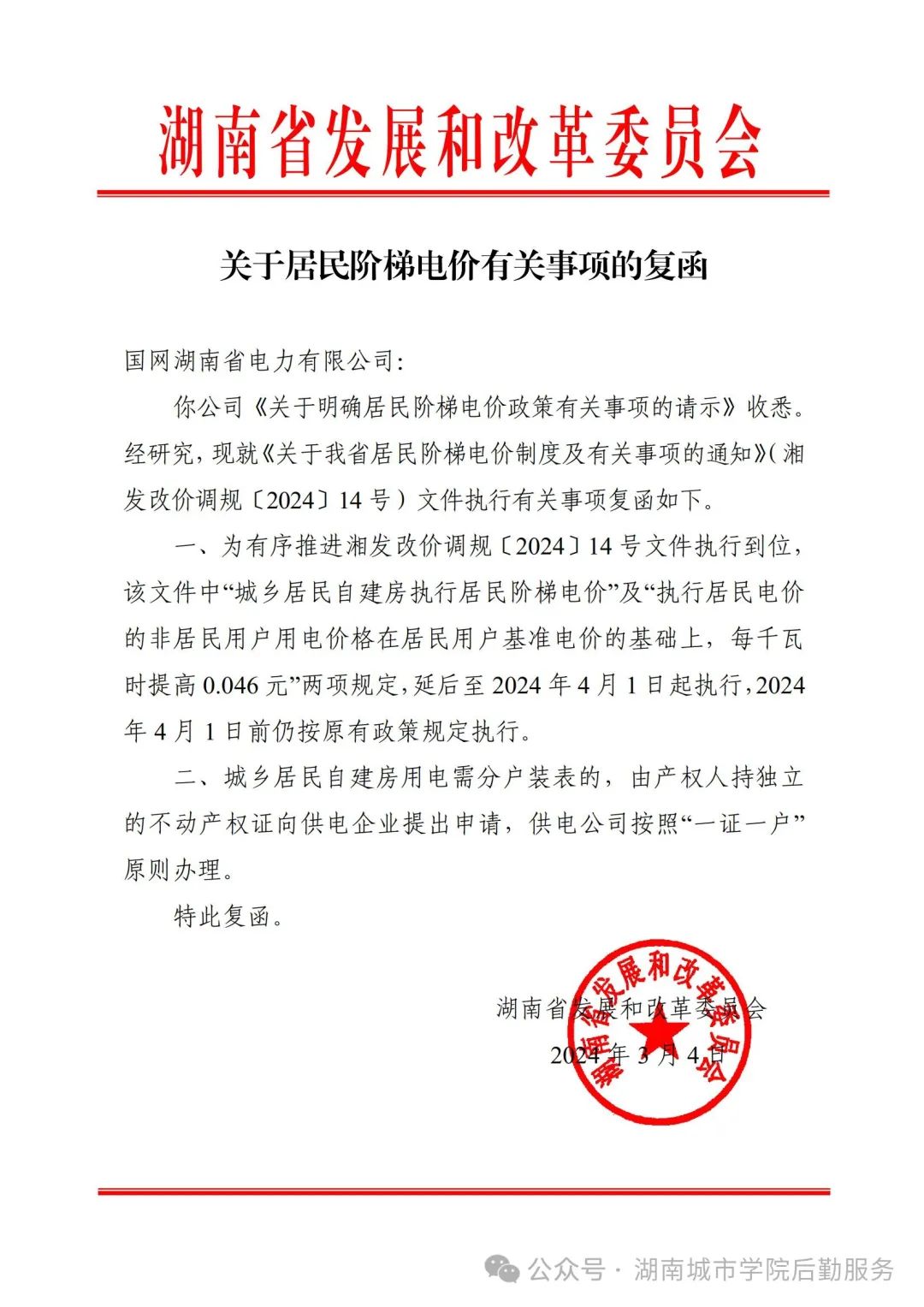 根据《湖南省发展和改委员会文件 湘发改价调规[2024]14号》文件,湖南省发展和改委员会完美(中国)官方我省居民阶梯电价制度及有关事项的通知,学校居民合表电价上调0.046元/度,学生宿舍、家属区、食堂、热水公司、洗衣机公司等执行居民合表电价的用电单位全部调整为0.635元/度。