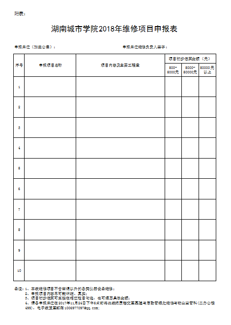 根据《完美网页版维修管理办法》相关规定,为切实做好2018年维修管理工作,确保2018年维修经费使用的合理性和科学性。请各部门认真做好2018年维修项目申报工作,并按要求填写好《完美网页版2018年维修项目申报表》。请将申报表纸质档交基建与后勤管理处维修与物业监管科(二办公楼499),电子档发至邮箱1006977097@qq.com。截止上交日期为2017年11月24日下午5点,如未及时上交,即视为放弃申报。