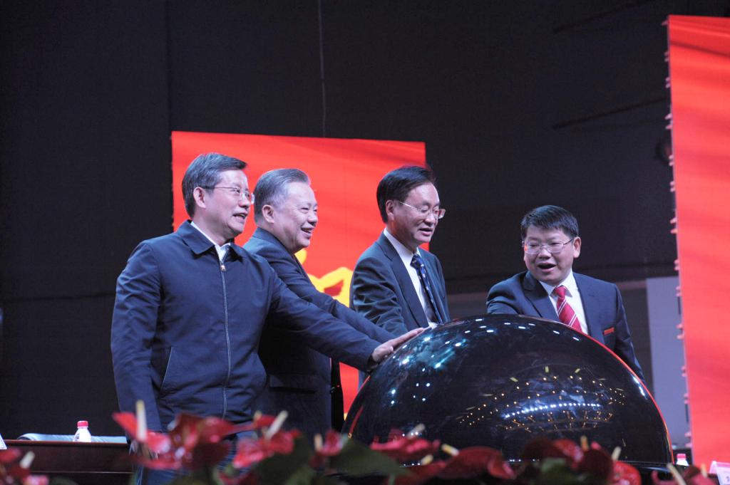 唐之享、李友志、瞿海、罗成翼共同启动水晶球。