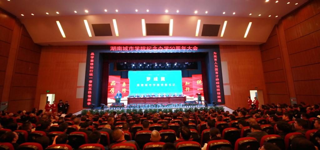 学校党委书记罗成翼致辞。他深情回顾了学校50年办学历程。合并前的两校艰苦创业、迎难而上,为学校发展积淀了厚实根基。学校初创者和历届领导者们白手起家,迎难而上,艰苦创业,坚守师范定位,培养了一大批名校长、名教师,为地方基础教育做出了重大贡献。突出城建特色,依托行业办学,对接中小城镇,为全省市县培养了大批规划建设人才,被国家教委确定为全国示范性高工专重点建设学校。新组建的城院抢抓机遇、融合奋进,为学校发展开启崭新征程。本世纪初,顺应高等教育体制改革大潮,完美网页版应运而生。两校合并伊始,快速推进深度融合。更新教育观念,转变教育模式,顺利实现从专科到本科的转型。2012年,第二次党代会明确了“三步走”发展战略,不断完善本科教育教学体系,人才培养质量不断提高,顺利通过了教育部本科教学合格评估,推进新校区二期工程建设,完成了两校区合一,办学质量与办学效益大幅提升。新时代的城院破立并举,改革创新,稳中快进实现了跨越式发展。2016年第三次党代会以后,学校顺应教育领域综合改革的时代潮流,自主全面系统地推进整体性重塑,以大改革推进了快发展。开展“三个发展”大讨论,制定“一二三五”发展战略;目标导向分类大发展,做强城建类学科、做大信息制造类学科、提质管理服务类学科、夯实基础类学科;破立结合推进大改革,一是破分而散,立精而集、专而能的机构调整与编制改革。将16个二级学院调整为12个。二是破身份限制,立业绩导向和核心指标导向的绩效分配与目标管理考核改革,激发干事创业活力。三是破守摊平庸,立能上能下,41名处级干部主动退出领导岗位,一批80后博士教授走上重要中层岗位。四是破封闭僵化,立校企(地)合作、产教融合的应用型人才培养模式改革,构建“1234”应用型人才培养体系。五是破粗而松,立细而实、紧而准的精细管理改革,开源节流创造近2亿效益。六是破传统滞后,立应用型、现代型制度体系的大学制度改革,推进治理体系和治理能力现代化。改革创新取得大成效。4年多来,新建运动场、和学生公寓,校园道路提质、美化亮化、教学楼栋改造等基本建设,职工待遇和幸福指数显著提高,获批“湖南省新增硕士学位授予单位立项建设单位”;高水平通过了教育部本科教学工作审核评估;跻身湖南省“高水平应用特色学院”行列;2020年,列入湖南省本科第一批次招生,实现了几代城院人的梦想。