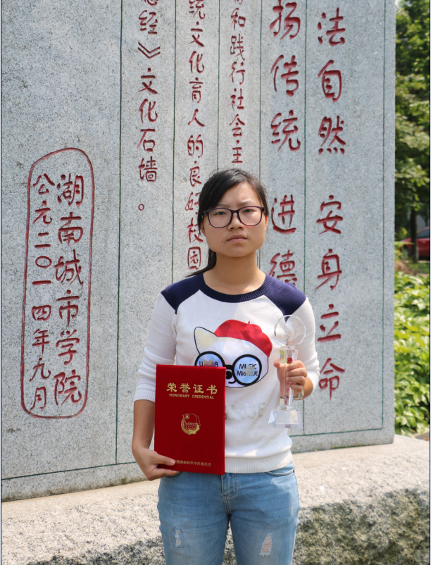 荣获2013-2014学年“三好学生”;荣获2013-2014学年“德智体美综合测评一等奖”;荣获2014年完美网页版城市管理学院“青春激扬、梦想起航”迎新晚会“优秀工作人员”;荣获2014年“社会主义核心价值观微视竞赛三等奖”;荣获2014-2015“优秀共青团员”;荣获2014-2015学年“三好学生”;荣获2014-2015学年“德智体美综合测评一等奖”;荣获2015年 完美网页版“第五届测绘技能大赛二等奖”;荣获2015年荣获“国家励志奖学金”;2015年申请入驻了大学生创新创业基地(龙诚造价工作室);2015年申请了大学生创新性研究项目主持人(PPP模式在湖南保障性住房的研究—以益阳为例)。