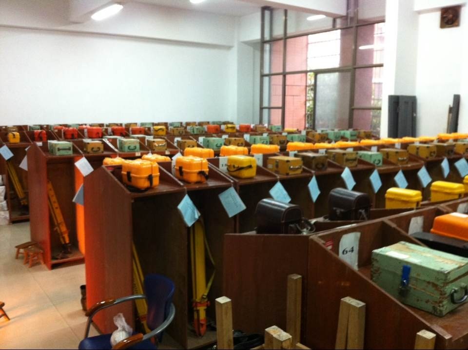 目前,校本部已有测量实验室3间,测量仪器设备395套,教研室1间,基本保证了新学期校本部 25个班级、1061名学生、400课时、18位老师和工作人员的测量教学需要。同时,在朝阳校区组织调配自习桌138张,骨排凳150条,完成了市政与测绘工程学院在实验中心三个学生毕业设计教室的调配,加上原有的两个学生实训室,满足了市政与测绘工程学院21个班级、823名学生、63周设计课时的教学安排,为市政与测绘工程学院的教学提供了便利。
