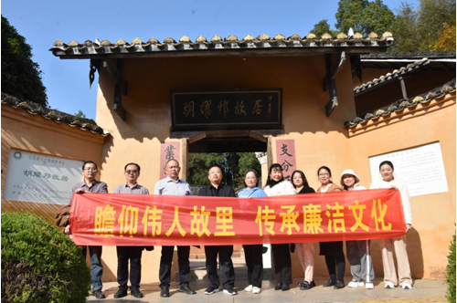 在胡耀邦故里廉洁文化专题陈列馆前合影留念