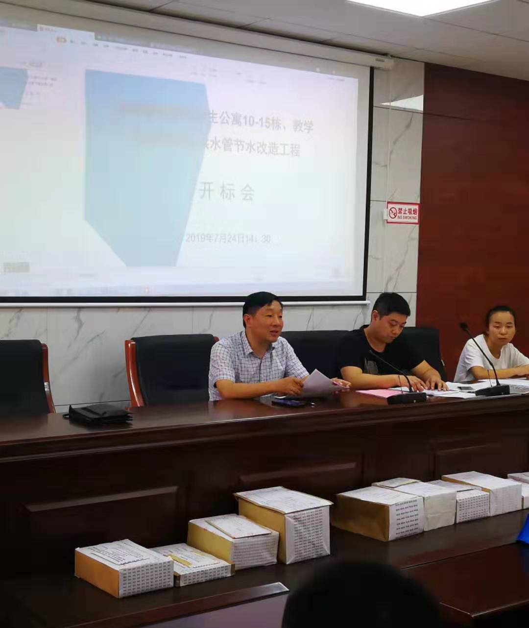 7月24日14:30 谭献良副校长出席在益阳市公共资源交易中心的开标仪式。在开标会上,他强调,我们坚持依法依规、公开、公平、公正的原则,欢迎各位投标人积极参与学校建设。今天开标的学生公寓1-3、8-9栋供水管道节水改造工程和学生公寓10-15栋、教学实验楼栋主供水管节水改造工程两项目建设要求高、时间紧,一旦中标,中标单位必须依法履行合同,确保工程质量,确保我们学校师生利益不受损失。