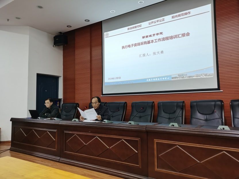 2020年12月04日15:00时,在土木楼828学术报告厅,采购与招投标管理中心主持召开“学校执行电子卖场采购工作流程操作”培训会。采购与招投标管理中心主任冷云飞组织学习了《完美网页版完美(中国)官方执行政府采购电子卖场的有关规定》(湘城院发[2020]66号)及相关要求和注意事项。培训会上,张大勇介绍了政府采购电子卖场的具体操作流程,王胜斌负责发放了全校各采购经办人和审核人岗位账号密码及负责会务事宜。