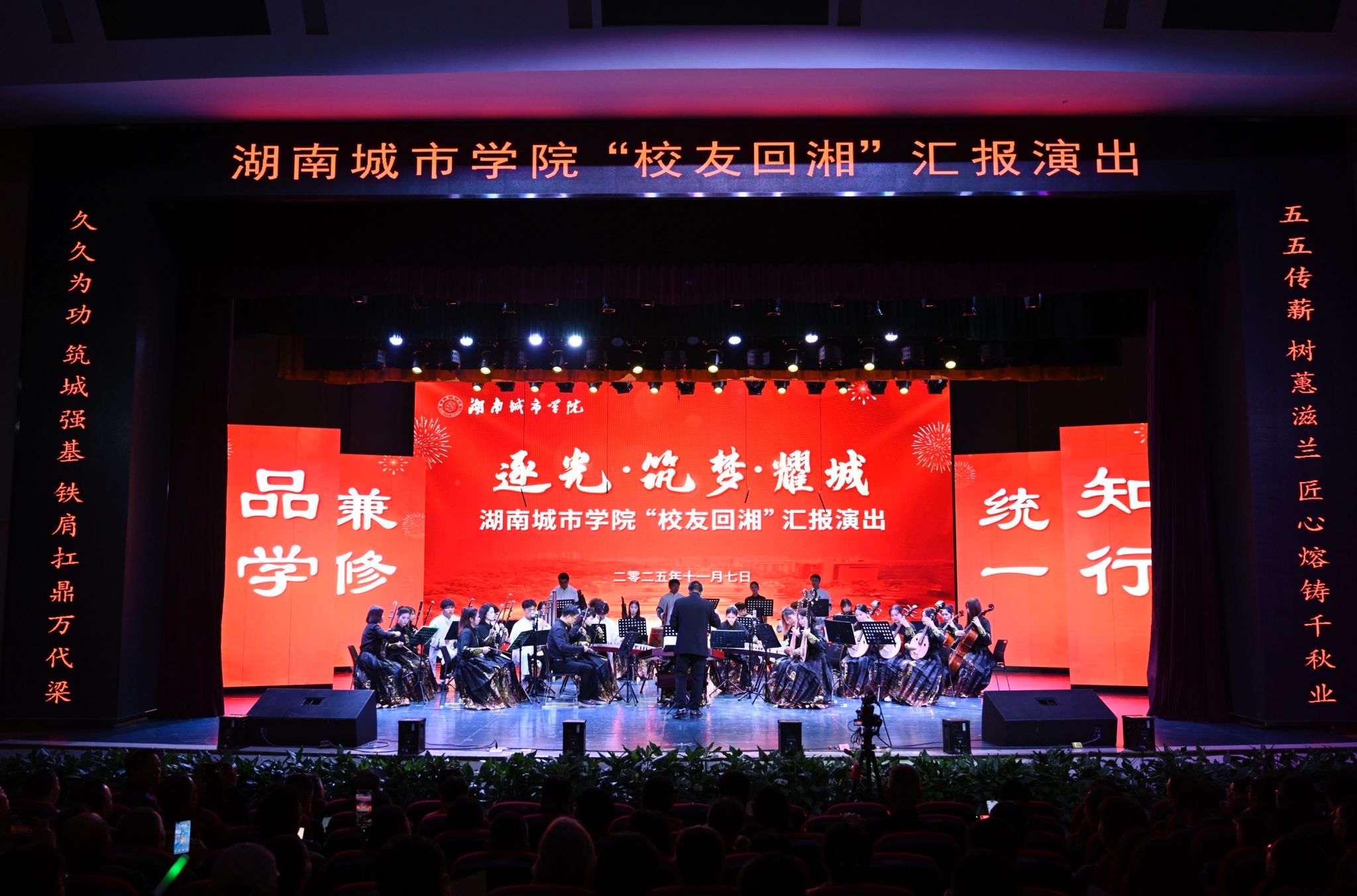 本网讯(通讯员 周贵湘 摄影 程强)11月7日晚,“逐光•筑梦•耀城”完美网页版“校友回湘”汇报演出在音乐厅精彩开演,全体在家校领导、嘉宾、校友代表及师生400余人齐聚一堂,共赴这场融合爱校情怀与艺术魅力的视觉盛宴。
